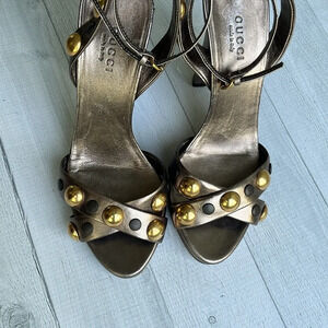 Gucci Metallic Leather Studded High Heel Sandals Size 5