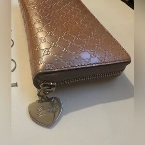Gucci Metallic Microguccissima Zip Around Heart Wallet Pink