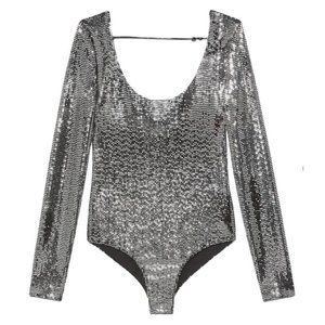 Silver Metallic Sequin Effect Bodysuit Blouse