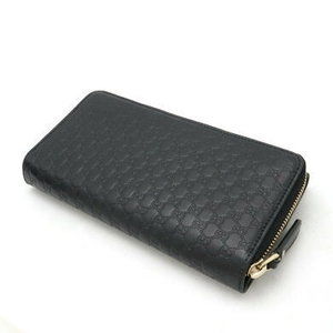 Gucci Micro Guccissima Tri Long Wallet Zip Black Leather
