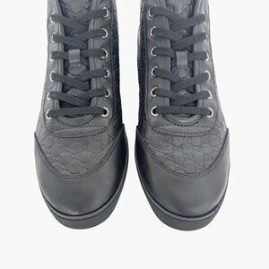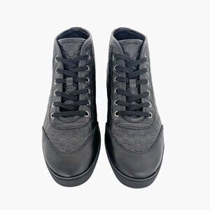 Gucci Mid Top GG Sneakers EU 38 US 8 Black Monogram Leather High Top Trainer