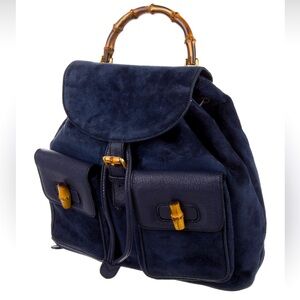 Gucci Midnight Blue Suede Backpack/ Purse Vintage Authentic