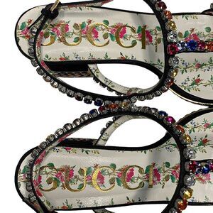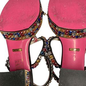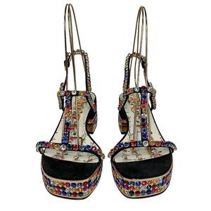 Gucci Mira Crystal Embellished Platform Sandals EU 37.5 US 7.5 Strappy Black