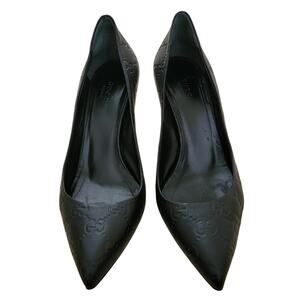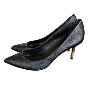 Gucci Monogram Bamboo Black Leather Kristen Guccissima Logo Pumps Heels