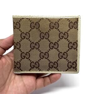Cream/Beige Bifold Wallet finished in leather and Classic interlocking Logo throughout.