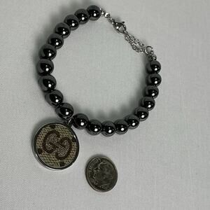 Gucci Monogram Canvas on a stainless steel cabochon.