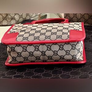 W Monogram GG Canvas w Red Calfskin Leather trim and dual rolled handles