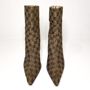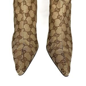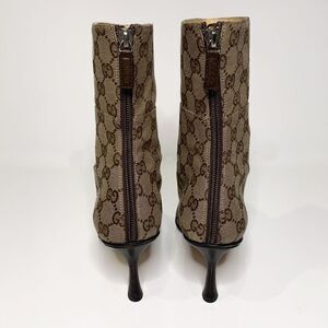 Gucci Monogram Double G Logo Canvas Calf Booties US 8 Brown Beige Supreme Heels