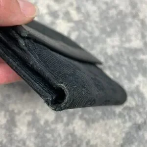 Both snaps are a little loose. Little bit of corner wear. Gucci brand name has partially rubbed off on the front. See all photos for condition.