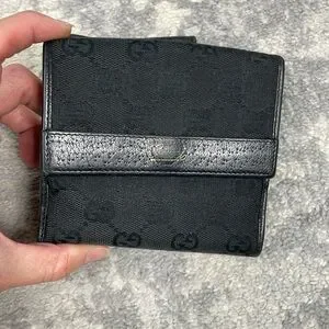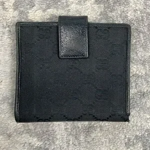 Gucci Monogram GG Canvas Leather Snap Compact Wallet Black
