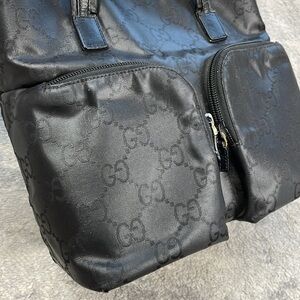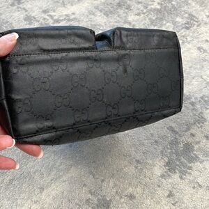 Gucci Monogram GG Small Black Nylon Tote Bag Zip Front Pockets Metallic Luxury