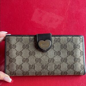 Gucci Monogram Heart Continental Wallet - GG Canvas & Beige Leather, EUC