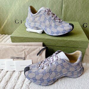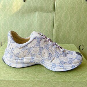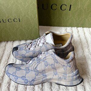 Gucci Monogram Run Runner GG Logo Sneaker Beige Blue Mens UK 8.5 US 9