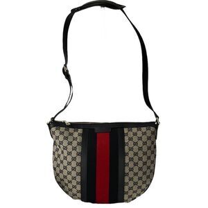 Gucci Monogram Vintage Web Medium Half Moon Hobo Handbag Crossbody