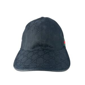 -Authentic Gucci Monogram Web Stripe Baseball Cap