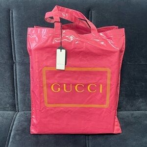 Gucci tote bag, pink Gucci bag, Gucci Monte Carlo, Gucci Barbie tote, Gucci coated canvas, Gucci large tote, luxury designer bag, Gucci pink orange logo, Gucci unisex bag, Gucci shopping bag, rare Gucci bag