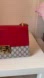 Chic Gucci shoulder bag with a rich burgundy leather top. Features a luxurious gold chain and classic Gucci pattern. Perfect for any occasion.