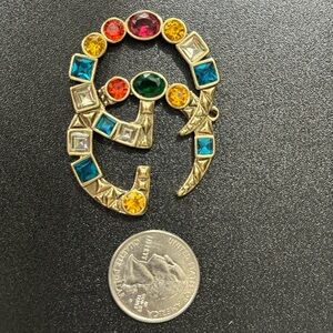 Elegant gold pendant adorned with multicolor gemstones. Perfect for adding a touch of luxury to any outfit.