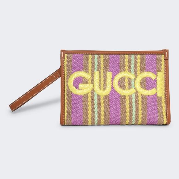 Gucci Multicolor Jute Pouch with Leather Trim NWT