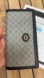 Gucci monogram long wallet with leather and canvas. The leather is soooo good and soft! On the inside the logo is the the same metal as on the outside and it has Gucci, made in Italy with the Gucci man emblem on it. This wallet is so pretty and in great vintage condition for vintage! The only callouts that I see is tarnishing on the hardware (which is normal) and on the inside zippered pocket, the fabric is frayed or ripped (see the last two pictures for this) and my price reflects all callouts. It can be repaired through a shoe cobbler. Easy fix! There is some corner wear, but it is not bad at all and it doesn’t affect the functionality of the wallet. It’s not perfect, but it looks really good! See all pics for exact condition. Please bid respectfully and responsibly.