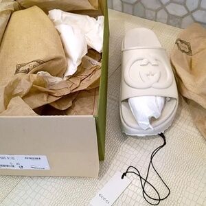 💋Gucci NEW Interlocking G Sandal Off-White Platform Slide