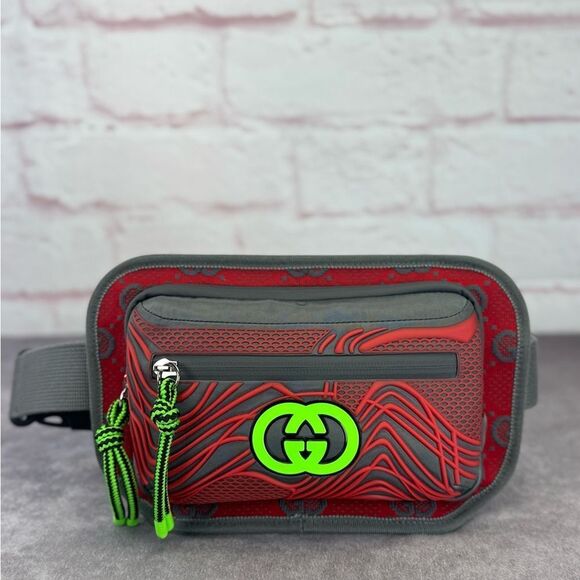 Authentic Gucci NEW Interlocking Graphic Red Gray Men's Belt Bag