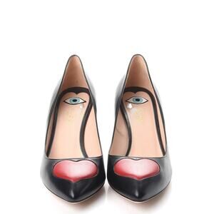 Gucci NIB Molina Black Nappa Pointed Toe Heart Heels Pumps 39 NEW