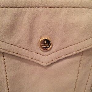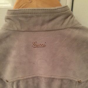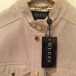 Authentic new Gucci gray suede jacket with beautiful gold buttons