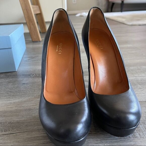 Gucci Nappa Charlotte Pump Stiletto Heels in Black Leather EU 38 US 8 MSRP $540