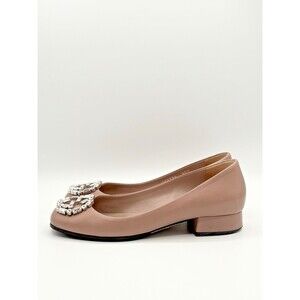 Gucci Nappa Crystal Interlocking G Low Heel Pumps Pink/Nude Leather Sz EU 35.5