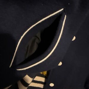 Stylish Gucci bomber jacket. Navy with cream lettering. Classic varsity style.