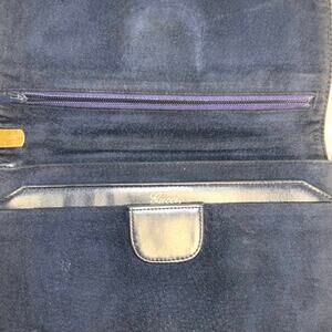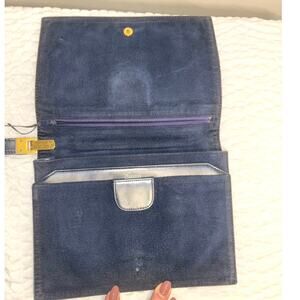 Prada Navy Leather Zip Around Wallet. Suede interior. Corners have been touched up. Wear and rubbing throughout. Missing snap closure. Preloved. See pictures for more details.