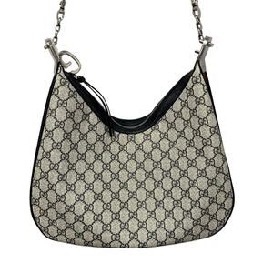 Gucci Navy Supreme Web Monogram Coated Canvas Large Attache Shoulder Bag