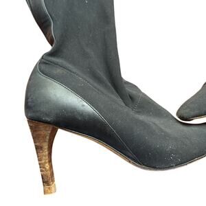 Gucci Neoprene Leather Trim Knee High Pointed Toe Heeled Boots Black 6.5 Women’s
