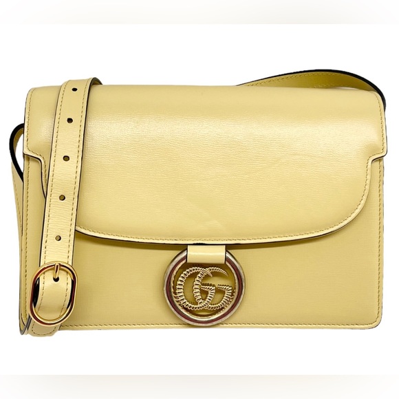 Gucci New GG Azalea Ring Logo Butter Yellow Leather Shoulder Timeless Purse Bag