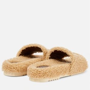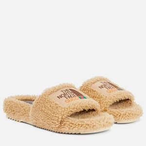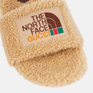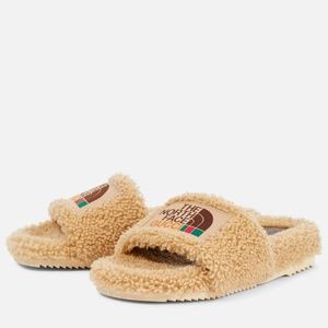 From Gucci's collaboration with The North Face, these teddy slides are a cozy style for winter. They're made from soft shearling and showcase dual branding atop the wide straps.