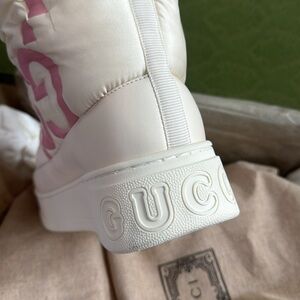 Gucci nylon gg maxi snow boot in pink and white. Size 38 fits true to size. Brand new never worn with box and dust bags.