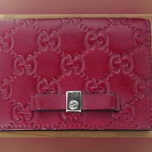 Gucci Offia Flora Fold Leather X Canvas X PVC Beige X Red Wallet Gold