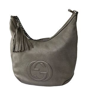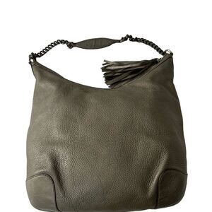 Elegant Gucci hobo bag in olive green. Features signature logo and tassel detail. Perfect for everyday use.