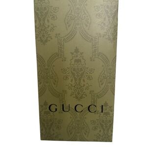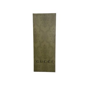 Stylish olive box with detailed patterns. Gucci logo on front. 10”x4”x2.5”.