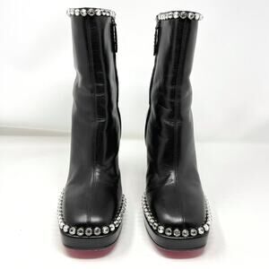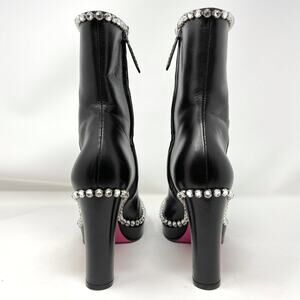 Gucci Olympia Black Leather Crystal Embellished Platform Boots 38.5