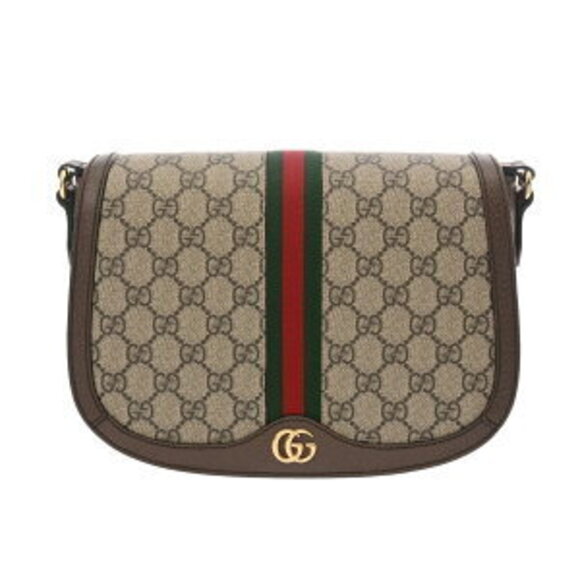 Gucci Ophidia Beige Ebony Brown GG Supreme Leather Shoulder Bag