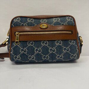 Gucci Ophidia Denim GG Monogram w/ Calfskin Leather Shoulder Bag - Preowned