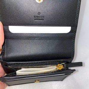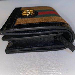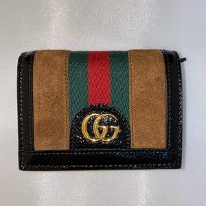 Gucci Ophidia GG Card Case Wallet Brown Suede and Patent Leather Trim NEW IN BOX