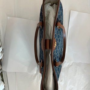 Gucci Ophidia GG Jacquard Denim Blue Brown Tote Bag Italy Leather Handbag New