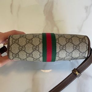 GUCCI OPHIDIA GG SUPREME MINI BAG The world of Ophidia evolves with the introduction of a mini bag shape, crafted from GG Supreme canvas with Web stripe detail. First used in the 1970s, the GG logo was an evolution of the original Gucci rhombi design from the 1930s, and from then it's been an established symbol of Gucci's heritage.