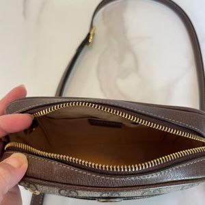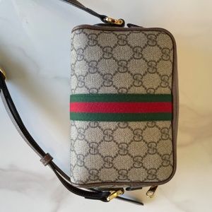Beautiful 100% authentic in a good preloved condition. Shows normal wear. Front zipper pulling was missing and replaced with a Gucci authentic zipper pulling. Top zipper pulling replaced is not Gucci branded but beautiful. Please see pictures. Corners and edges showing normal wear. Strap are good and Zipper works fine. Condition of bag in overall great. • GG Supreme canvas, with brown leather trim • Green and red Web • Gold-toned hardware • Oval enamel detail with metal Double G • Attached key ring that can attach to a separate bag • This item can fit a cell phone up to 3.1"W x 6.4"H x .3"D • Front zipper pocket • Interior open pocket • Adjustable shoulder strap with a 23.6” drop • Zipper closure • The Gucci card case wallet will fit inside this product • 6.8" W x 4.7" H x 2.1" D • Weight: 0.66lbs approximately • Made in Italy