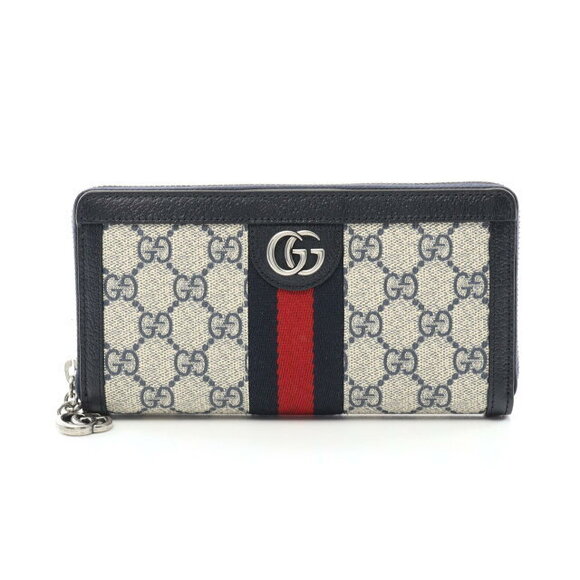 Gucci Ophidia GG Supreme Sherry Long Wallet Beige Navy Blue Multicolor