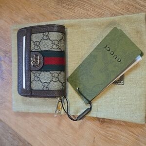 Authentic Gucci Ophidia GG zip card case wallet.