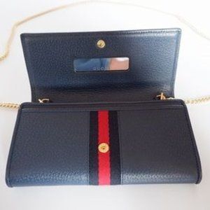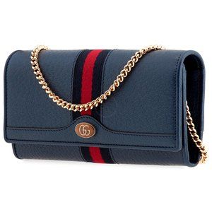 The Gucci Ophidia Leather Continental Wallet On Chain in Blue is the chic, everyday piece of luxury you desire.